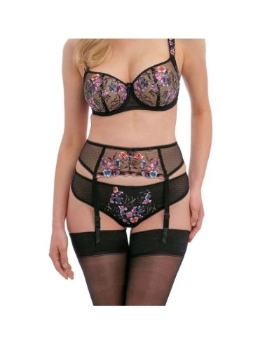 Des teintes de saphir, de magenta et de pourpre sont imprimées en surimpression à l’aide d’une technique spéciale pour créer une une broderie florale reliéfée. L’utilisation d’un tulle à pois permet de varier le design des produits. Les coutures verticales du soutien-gorge balconnet armatures permettent de rehausser la poitrine alors que le soutien-gorge renfort latéral, véritable signature Fantasie, projette la poitrine en avant.