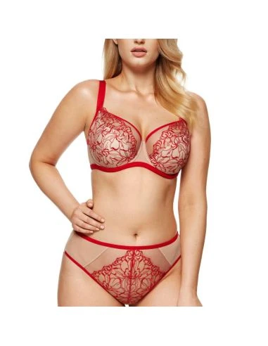 Mistress est une nouvelle ligne de lingerie sexy rouge pour l’hiver 2022 allant jusqu’au bonnet F. On aime son jeu de transparence et sa dentelle florale rouge sur son tulle transaprent. Lingerie Gorteks propose trois styles de soutiens-gorge : emboitant avec armatures, un push up armatures et une forme corbeille du bonnet A à H et du 85 au 115. On aime cette lingerie sexy avec armatures grandes tailles