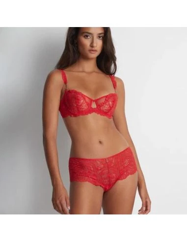 Flowermania est une nouvelle ligne signée Aubade pour le printemps été 2023. Lingerie sexy avec son coloris rouge floral, Flowermania est faite en dentelle recyclée aux motifs exotiques sur un tulle transparent raffiné. Flowermania propose une large gamme de soutiens-gorge: plunge, emboitant, corbeille, brassière ou encore un sublime bustier, à assortir avec le shorty, slip, culotte haute ou tanga. Les pièces coup de coeur de Flowermania sont le body en dentelle ultra sexy et le porte-jarretelles. Flowermania vous donnera des idées cadeaux pour la St Valentin!!!