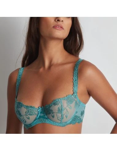 La collection de lingerie AUBADE, SOFTESSENCE est devenu un modèle permanent et basique. Softessence a l’avantage d’être d’un confort absolu tout en garantissant un maintien optimal (même pour un sans armatures!). La ligne de lingerie aubade Softessence est conçue éco-responsable, toutes ses broderies ainsi que ses bretelles sont en matières recyclées. Aubade propose dans sa ligne Softessence différentes formes: brassière triangle sans armatures, soutien gorge spacer plunge avec armatures et corbeille confort jusqu’au bonnet G, culotte haute confort et séduction, tanga, culotte saint tropez (shorty)...Softessence se décline en plusieurs coloris: noir et skin.