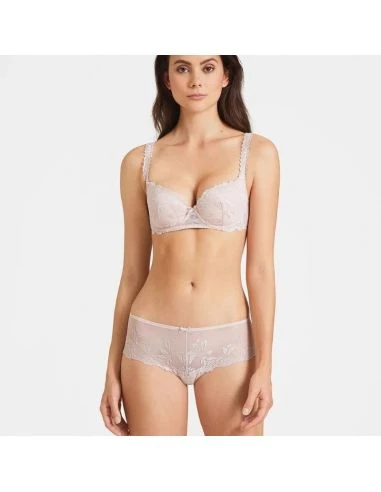 La collection de lingerie AUBADE, SOFTESSENCE est devenu un modèle permanent et basique. Softessence a l’avantage d’être d’un confort absolu tout en garantissant un maintien optimal (même pour un sans armatures!). La ligne de lingerie aubade Softessence est conçue éco-responsable, toutes ses broderies ainsi que ses bretelles sont en matières recyclées. Aubade propose dans sa ligne Softessence différentes formes: brassière triangle sans armatures, soutien gorge spacer plunge avec armatures et corbeille confort jusqu’au bonnet G, culotte haute confort et séduction, tanga, culotte saint tropez (shorty)...Softessence se décline en plusieurs coloris: noir et skin.