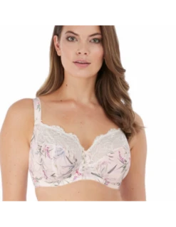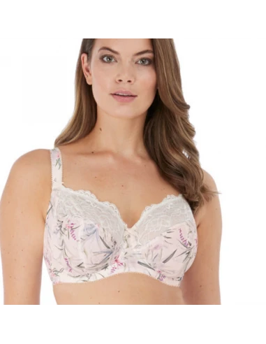 Posé sur un fond ivoire, l’imprimé Carena inspiré de fleurs botaniques fleurit dans des tons vert, rose blush et magenta. Dotée d’une dentelle ivoire, cette collection propose deux des modèles phares de Fantasie, le Renfort latéral à armatures et le Corbeille paddé à armatures – parfaits pour une poitrine sublimée et rehaussée.