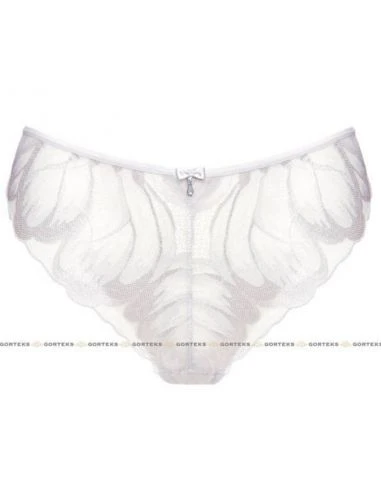 Moon est un ligne de lingerie très douce et romantique pour cet été avec son coloris silver. On aime son coloris doux et ses différentes formes. Lingerie Gorteks propose trois styles de soutiens-gorge: push up du bonnet A à F, foulard ou paddé du bonnet A à J et du 85 au 115. On aime la broderie florale sur les bonnets. Pour assortir son soutien-gorge Moon, trois bas: slip classique du 36 au 48, string ou shorty. La pièce coup de coeur de cette lingerie Moon est le body du 38 au 48.